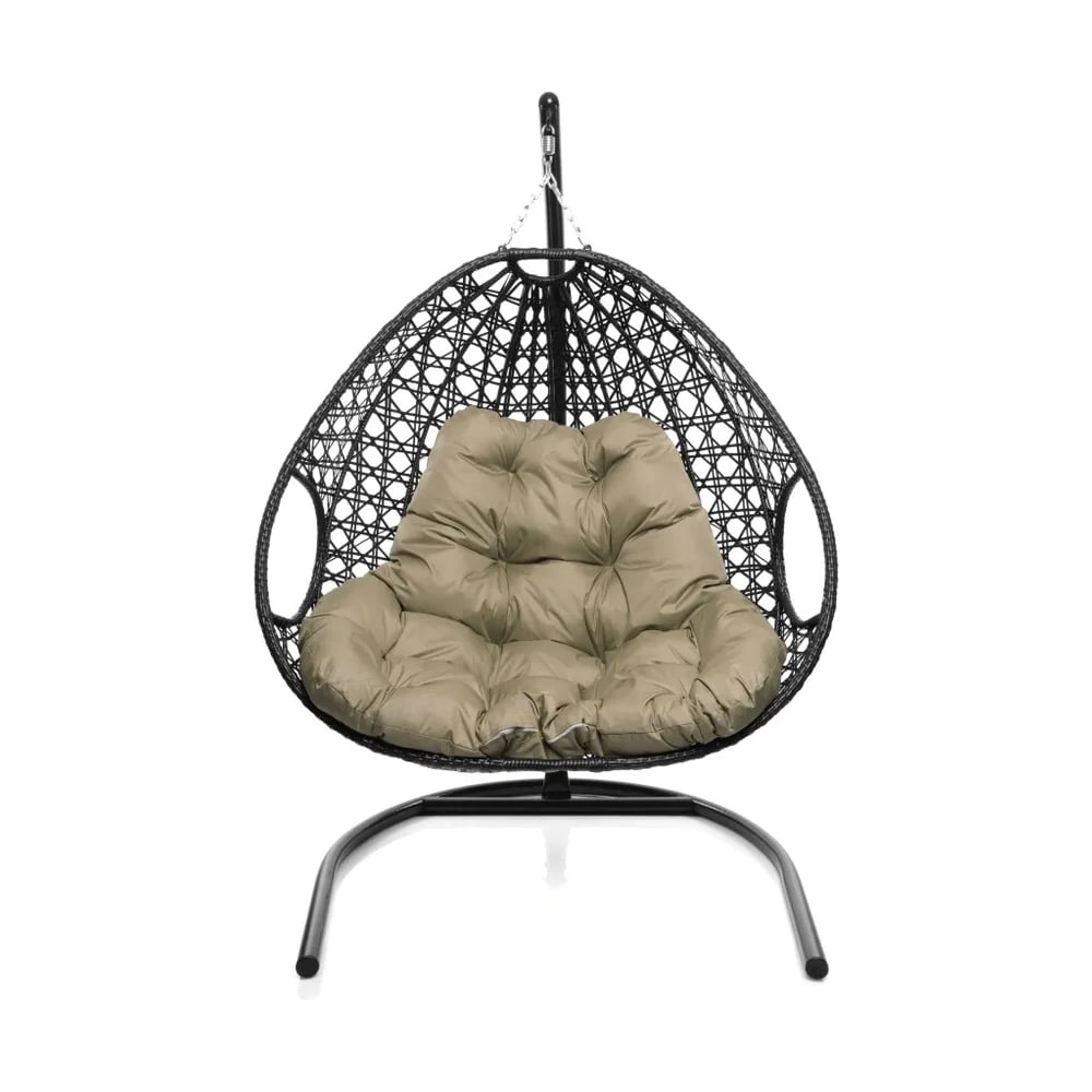 Подвесное кресло M-GROUP ДЛЯ ДВОИХ ЛЮКС с ротангом чёрное, бежевая подушка 11510401