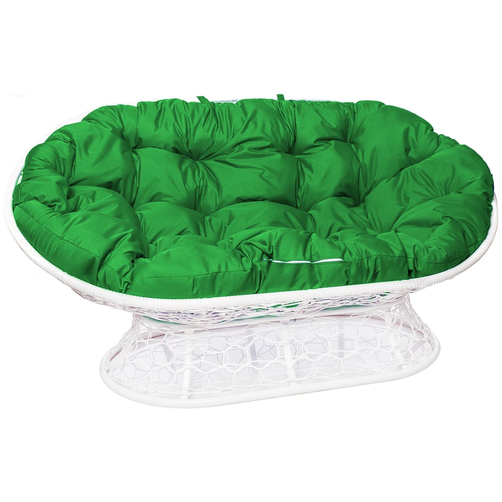 Диван M-GROUP МАМАСАН с ротангом белое, зелёная подушка 12110104