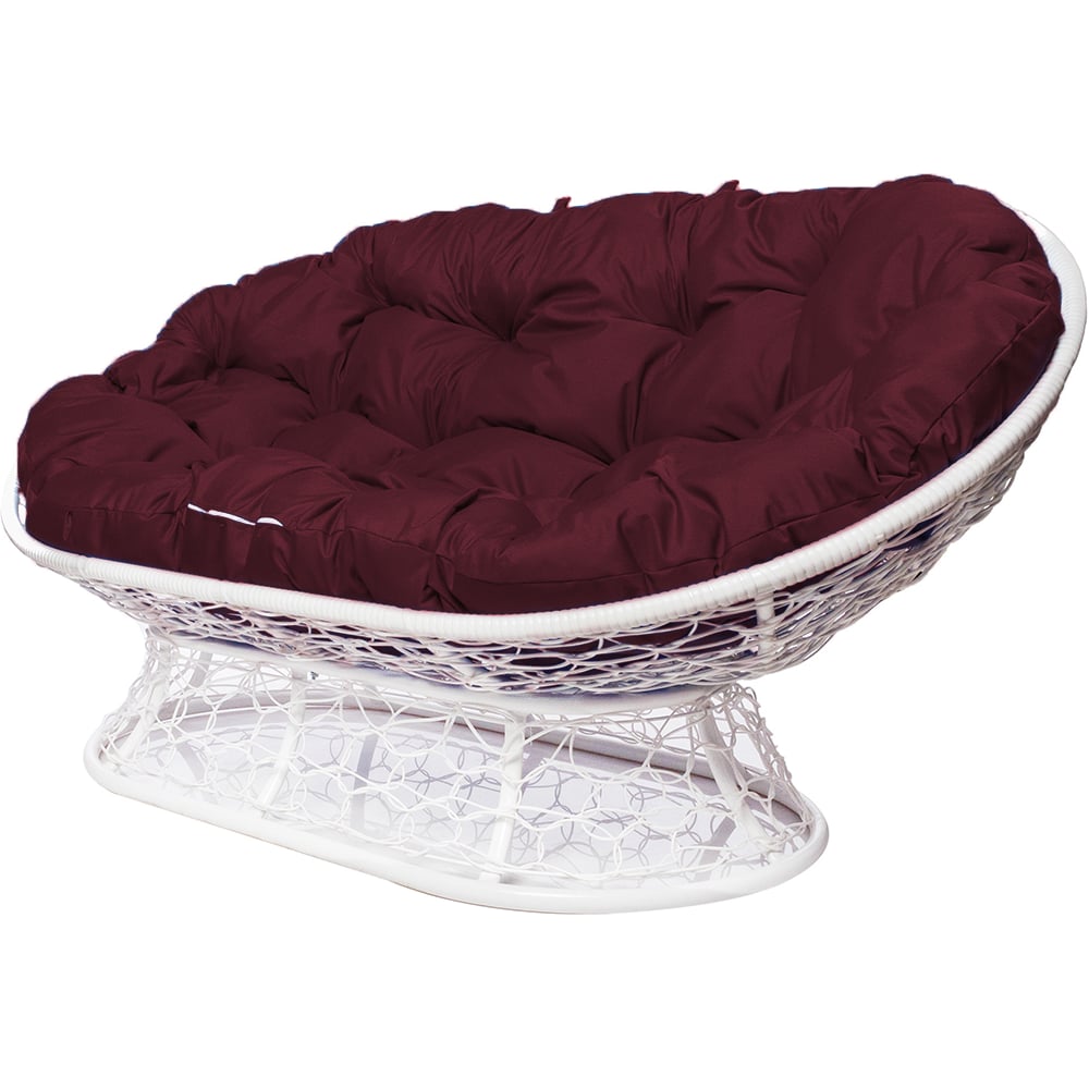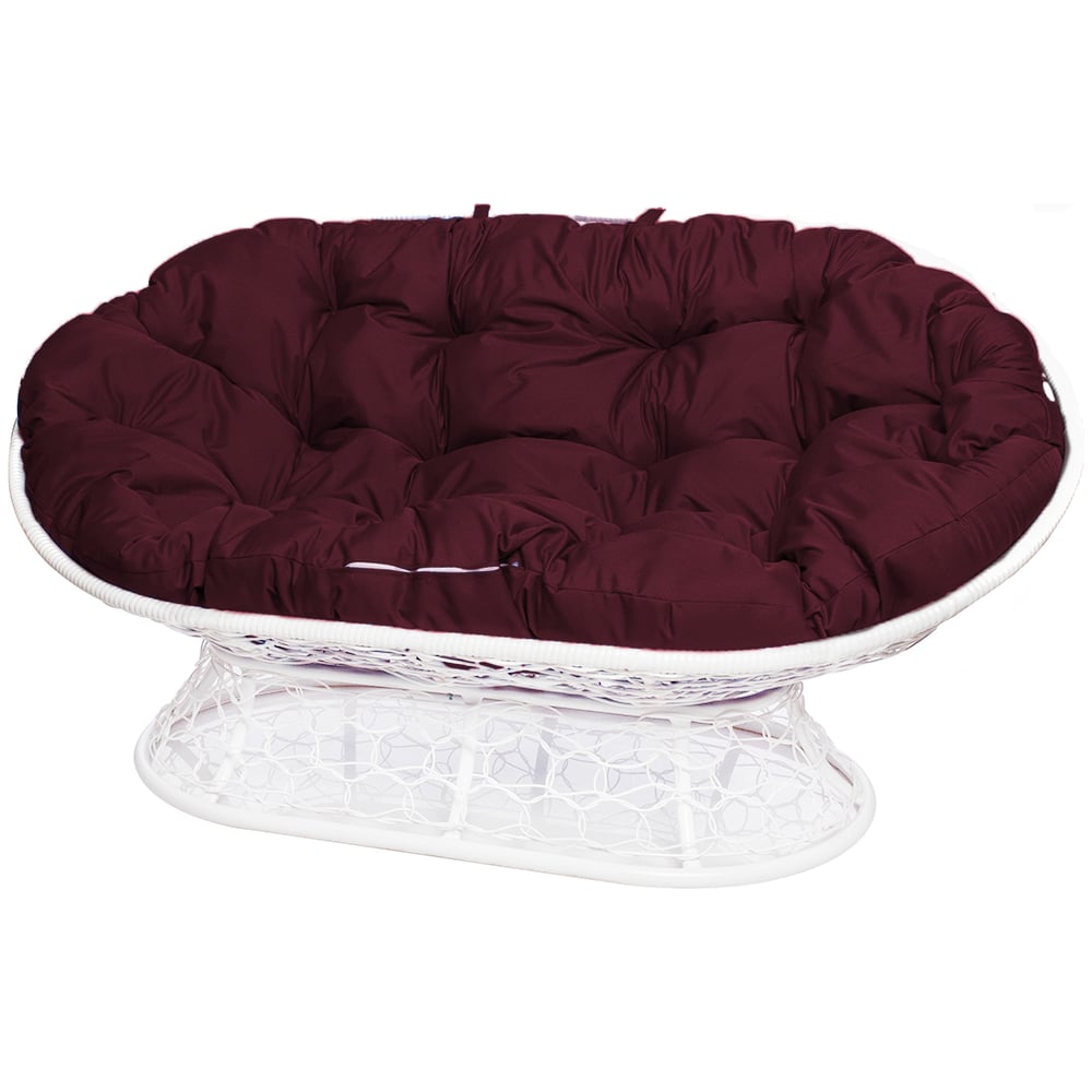 Диван M-GROUP МАМАСАН с ротангом белое, бордовая подушка 12110102