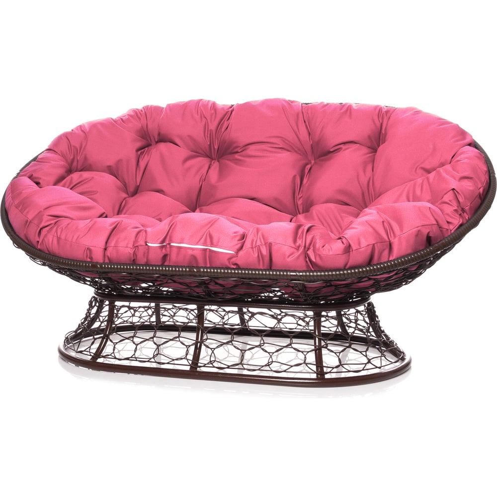 Диван M-GROUP МАМАСАН с ротангом коричневое, розовая подушка 12110208