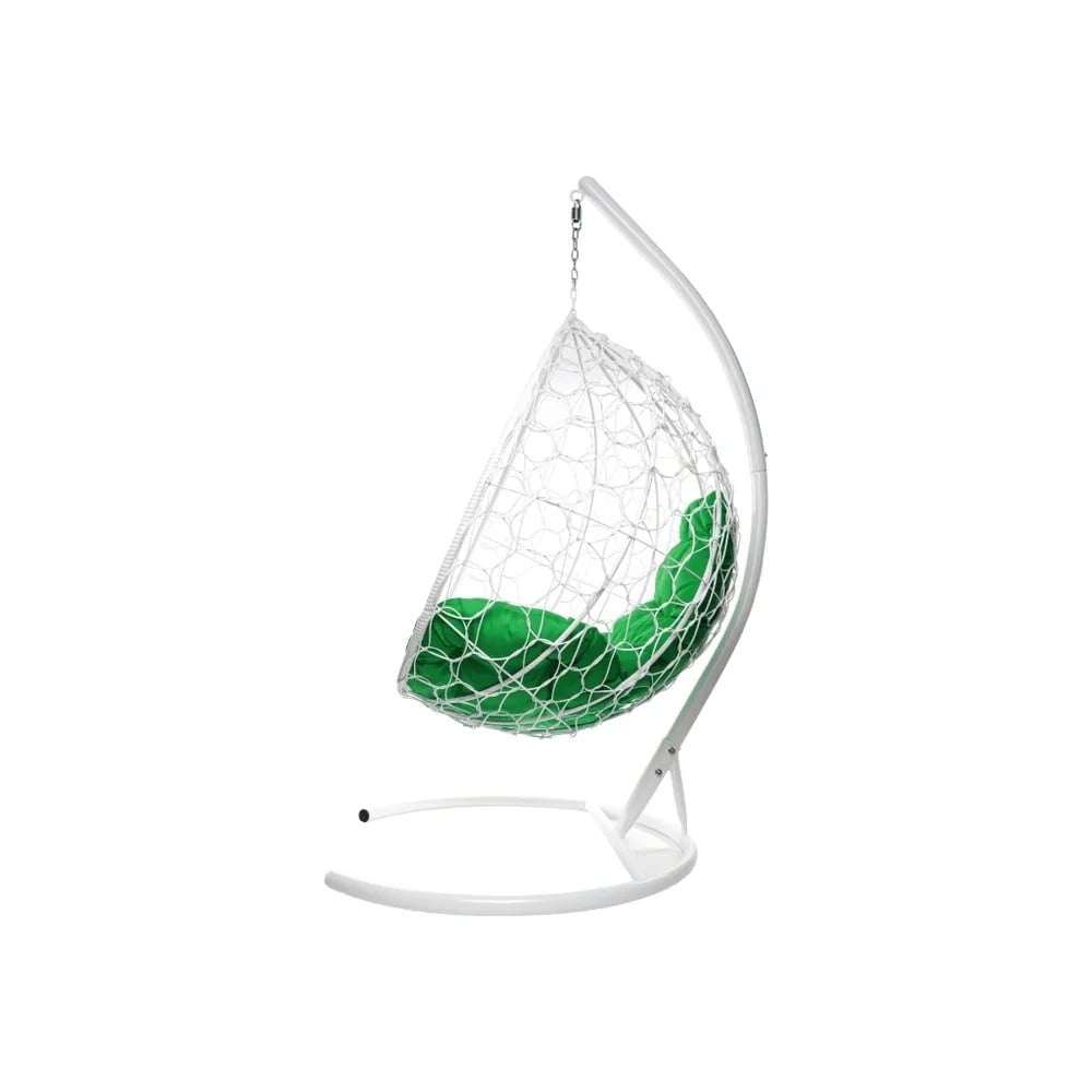 Подвесное кресло M-GROUP КАПЛЯ с ротангом белое, зелёная подушка 11020104