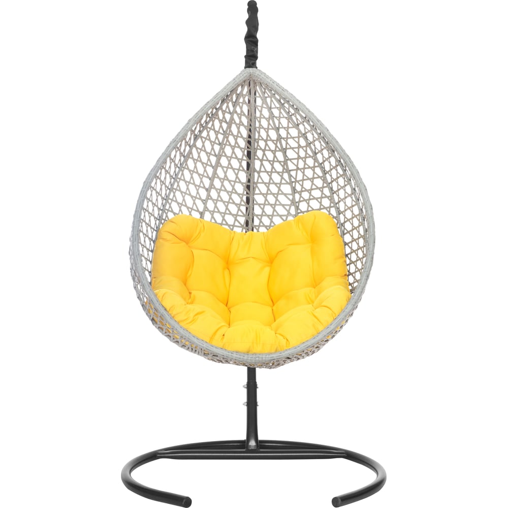 Подвесное кресло-кокон Лаура Montblanc серый + каркас, подушка жёлтая MONB 508