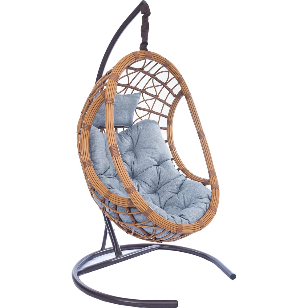 Подвесное кресло-кокон Лаура SAVIRA горячий шоколад + каркас, подушка светло-серая SVR-403