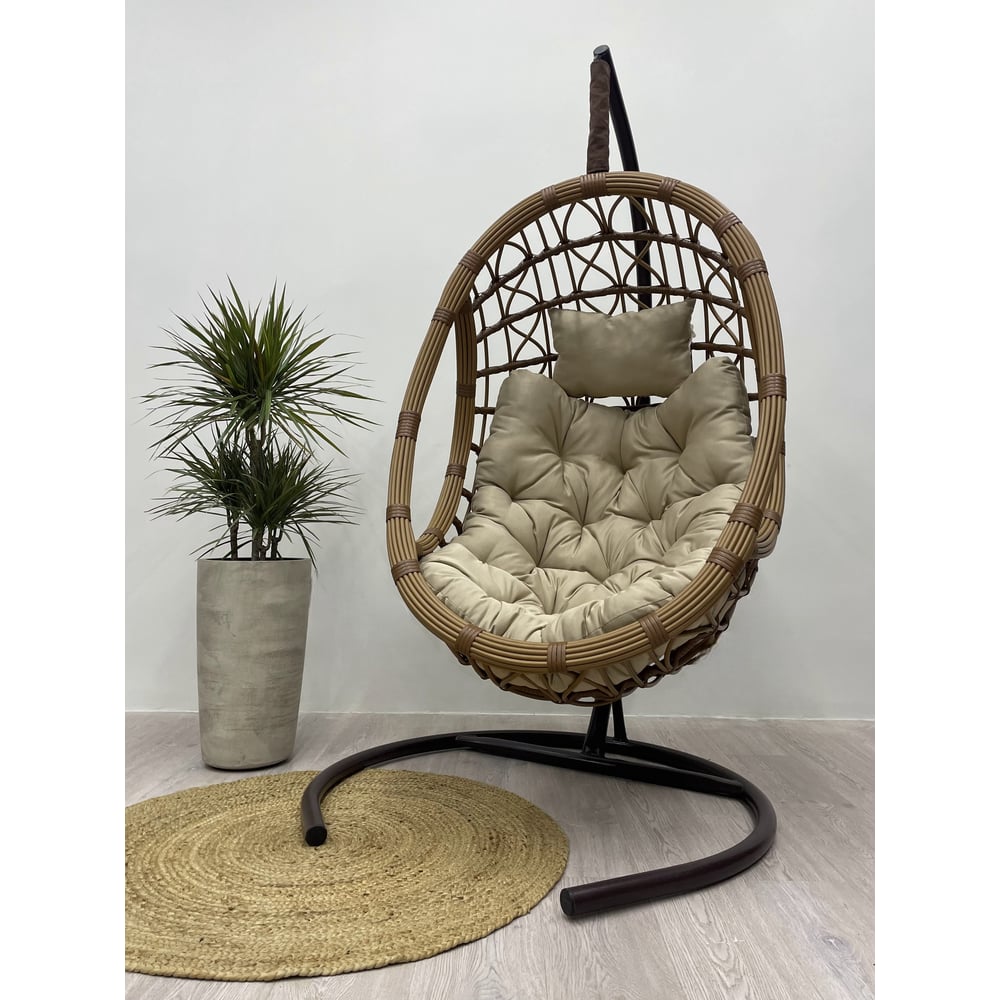 Подвесное кресло-кокон Лаура SAVIRA горячий шоколад + каркас, подушка бежевая SVR-401