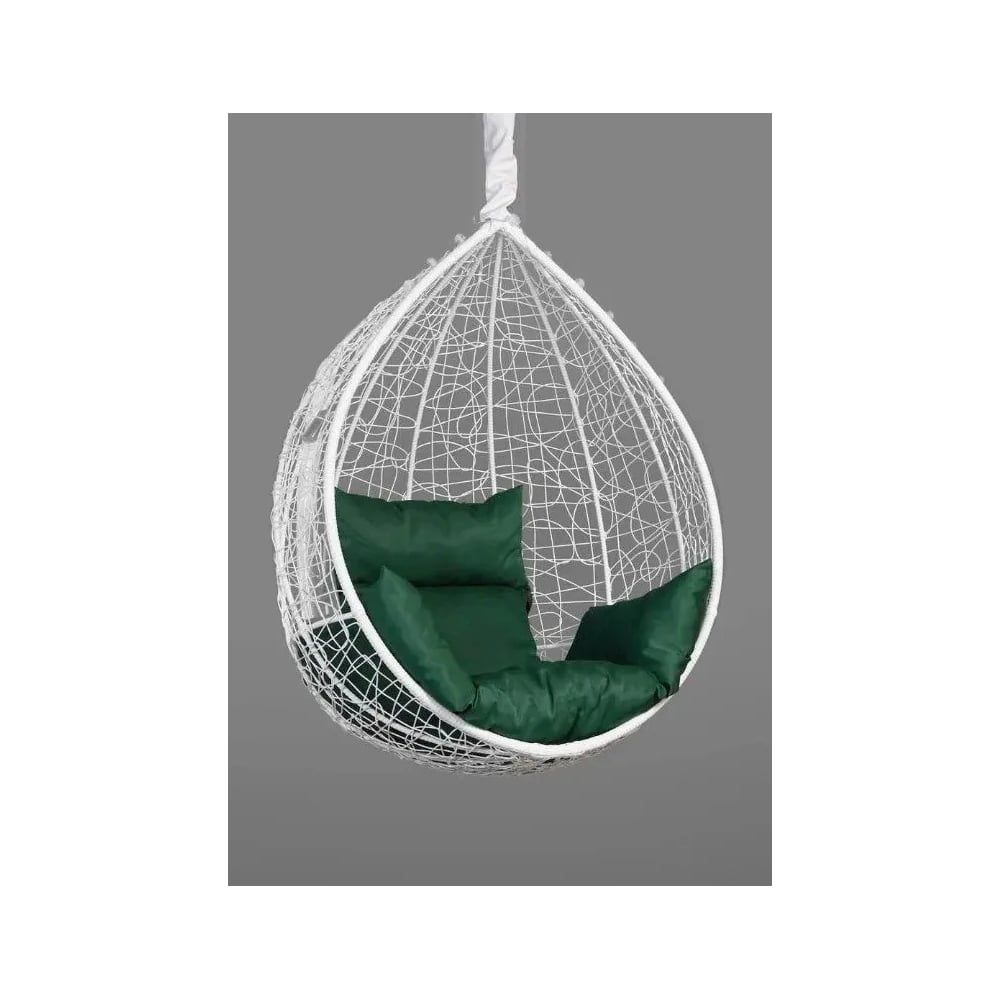 Подвесное кресло-кокон Лаура SEVILLA белый +каркас, подушка зеленая SEV-1-203