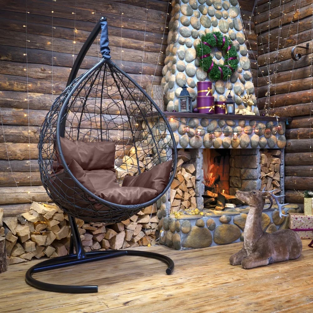 Подвесное кресло-кокон Лаура SEVILLA черный + каркас, подушка коричневая SEV-1-102