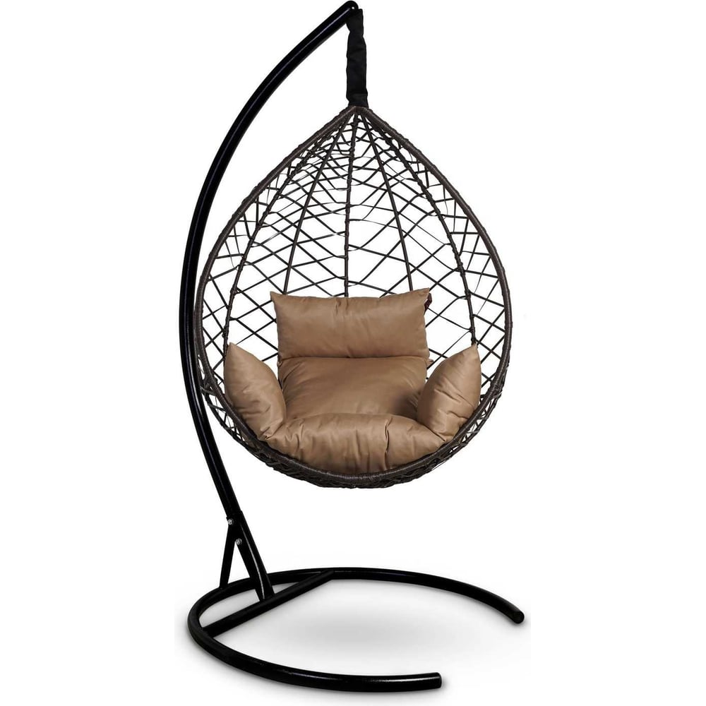 Подвесное кресло-кокон Лаура ALICANTE коричневый + коричневый каркас,подушка бежевая ALI 301