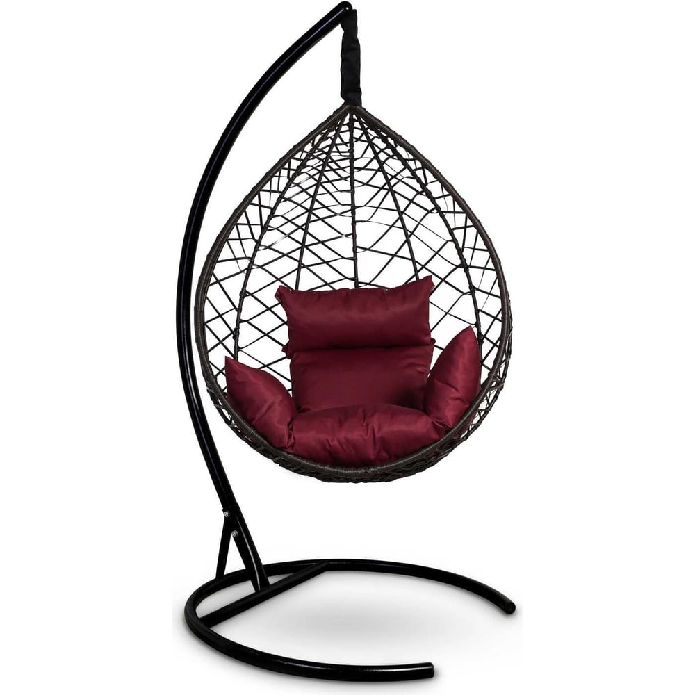 Подвесное кресло-кокон Лаура ALICANTE коричневый + коричневый каркас,подушка бордовая ALI 304