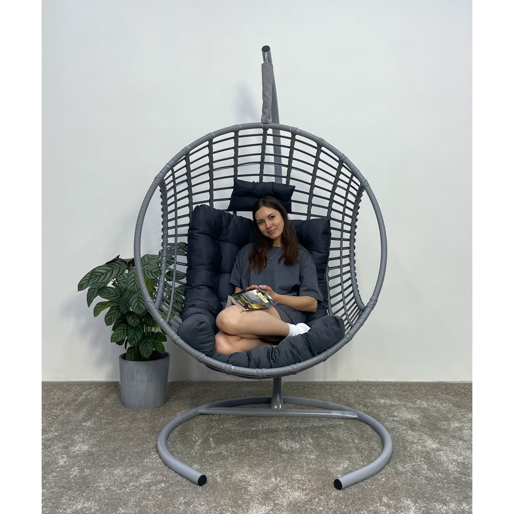Подвесное кресло-кокон Лаура FLATA серый + каркас, подушка темно-серая FLT-212