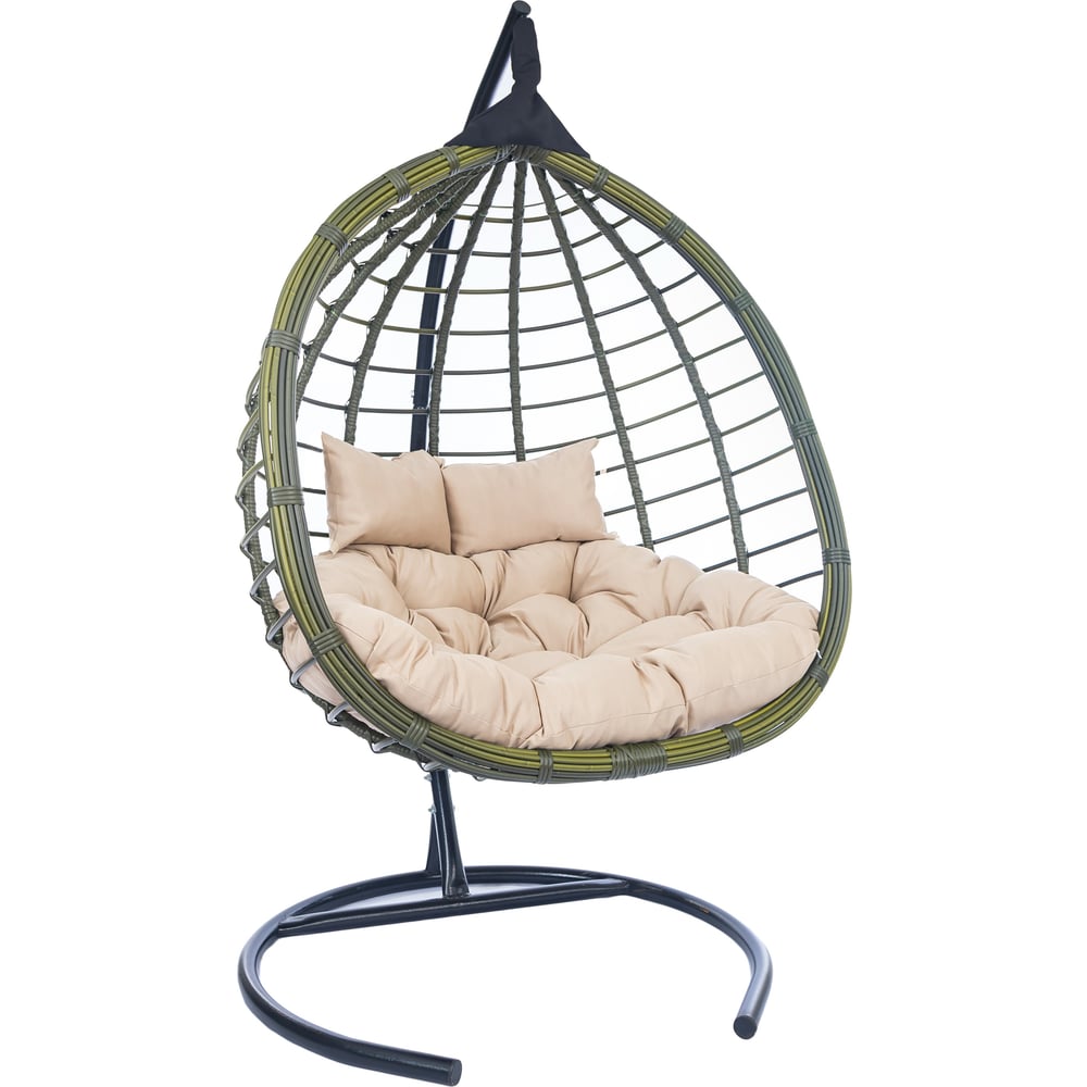 Подвесное двухместное кресло-кокон Лаура HASTA бамбук + каркас, подушка бежевая HST-502