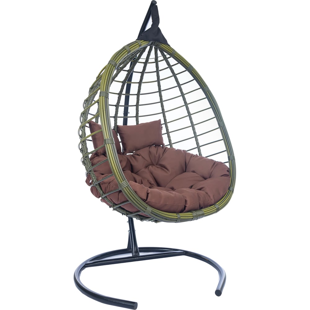 Подвесное двухместное кресло-кокон Лаура HASTA бамбук + каркас, подушка коричневая HST-501