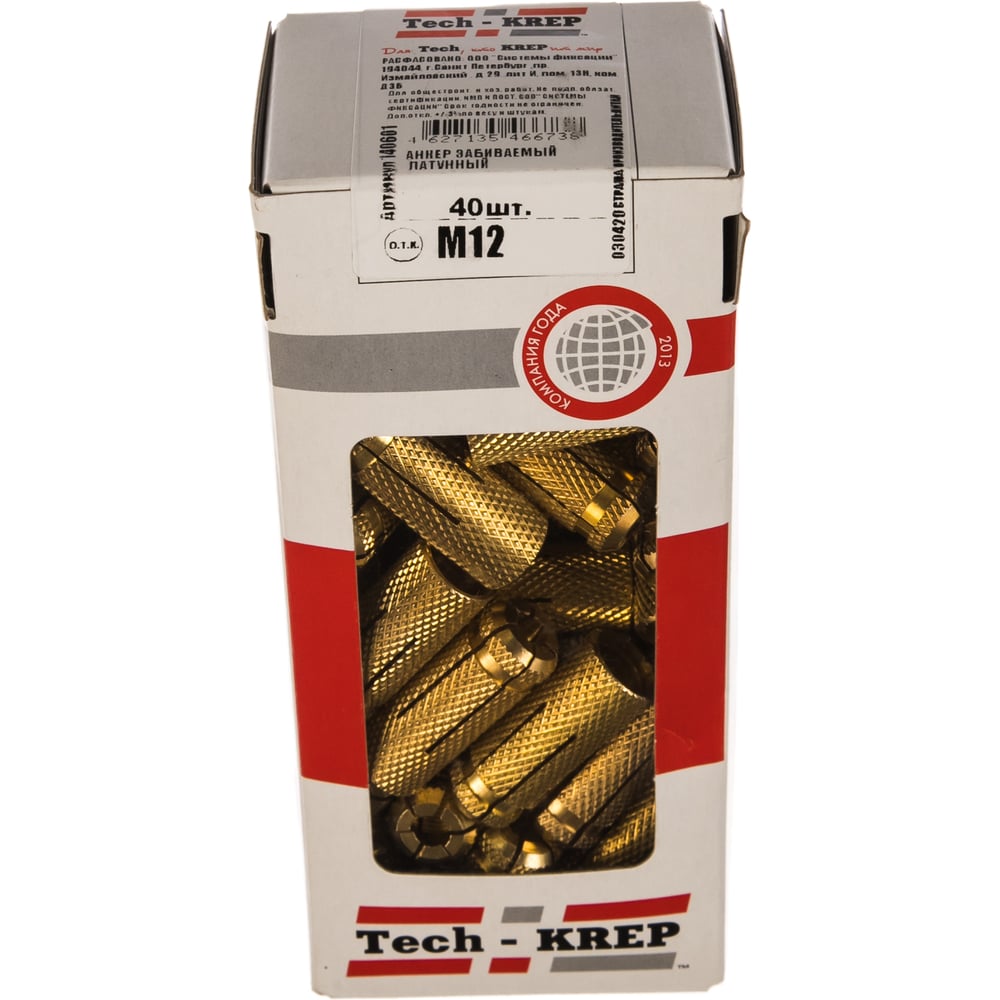 Забиваемый латунный анкер Tech-Krep М12 40 шт - коробка 140601