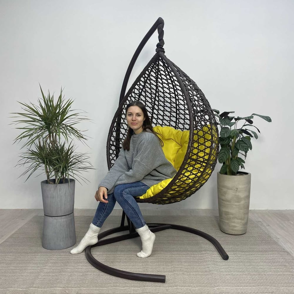 Подвесное кресло-кокон Лаура Montblanc коричневый + каркас, подушка жёлтая MONB 308