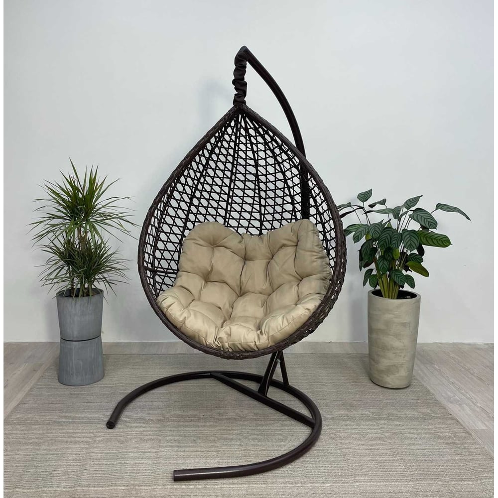 Подвесное кресло-кокон Лаура Montblanc коричневый + каркас, подушка бежевая MONB 301