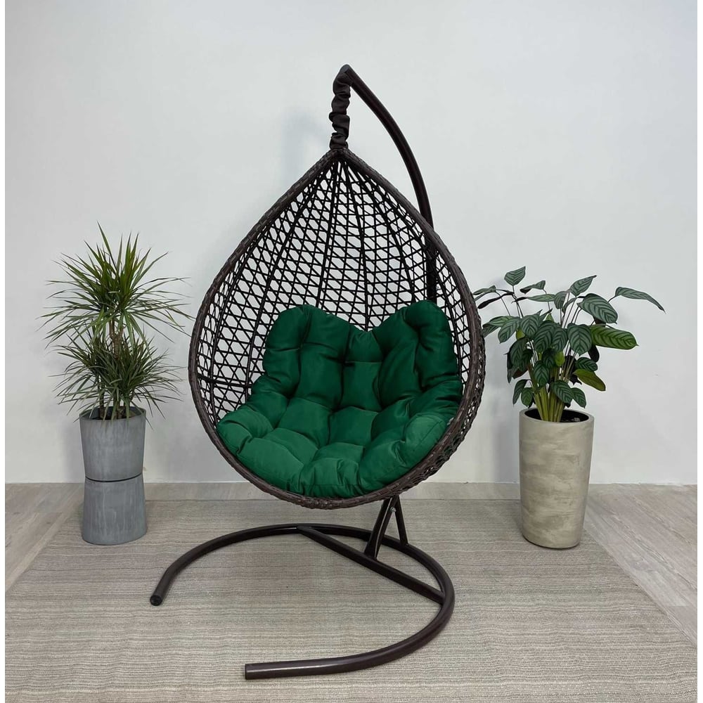 Подвесное кресло-кокон Лаура Montblanc коричневый + каркас, подушка зелёная MONB 303