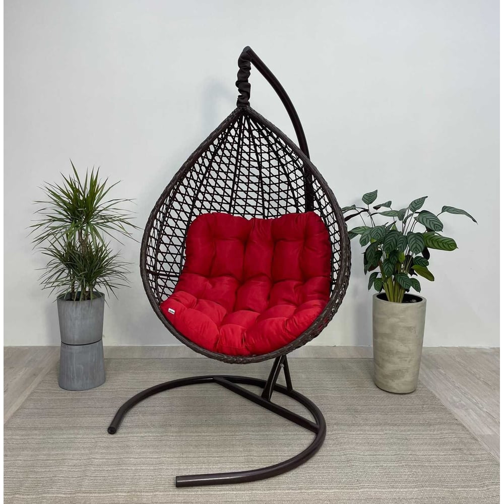 Подвесное кресло-кокон Лаура Montblanc коричневый + каркас, подушка красная MONB 306