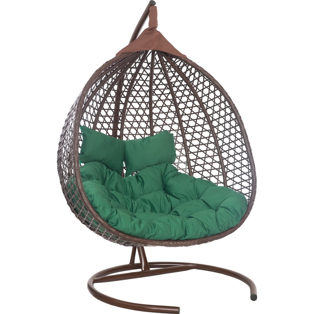 Подвесное двухместное кресло-кокон Лаура ФИДЖИ коричневый +каркас, подушка зелёная FID 310