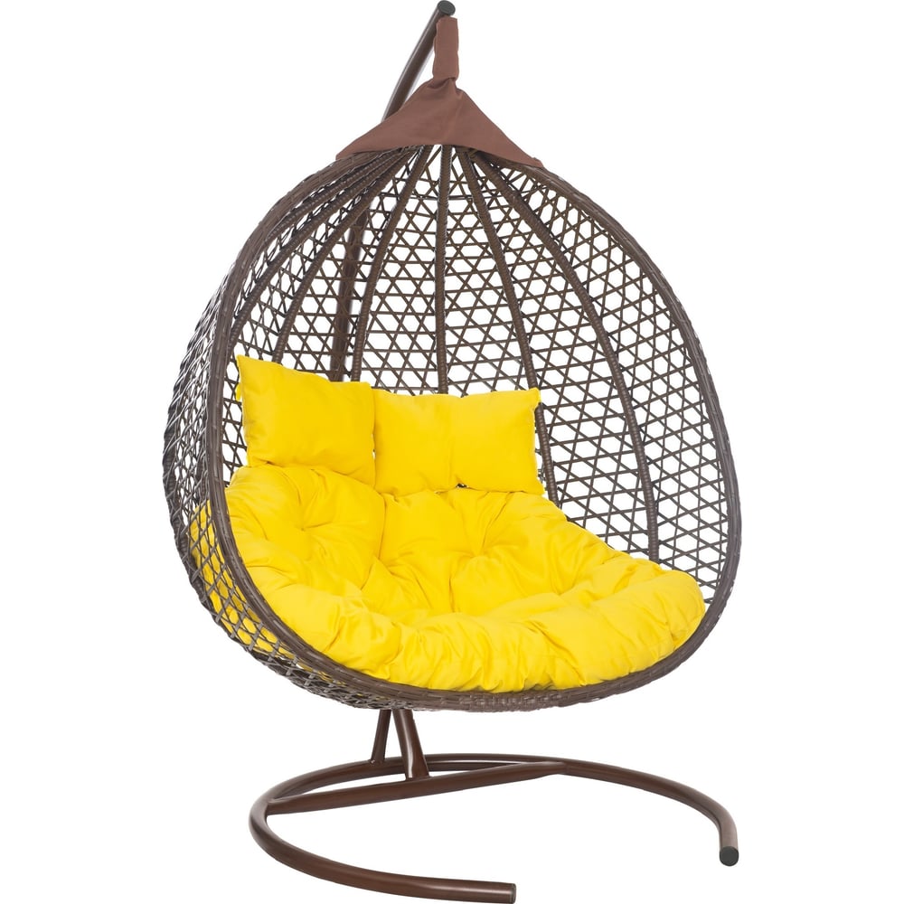 Подвесное двухместное кресло-кокон Лаура ФИДЖИ коричневый +каркас, подушка жёлтая FID 311