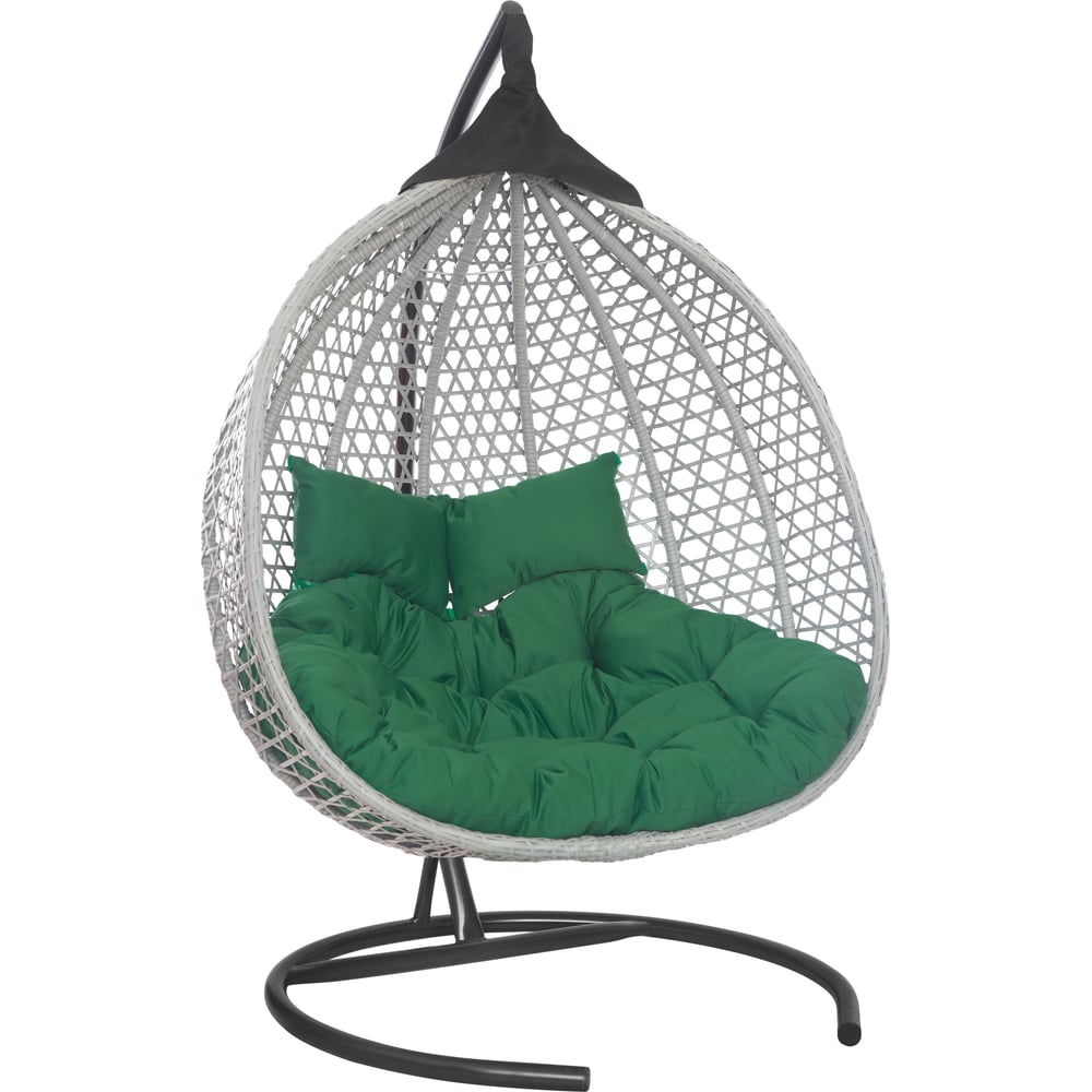 Подвесное двухместное кресло-кокон Лаура ФИДЖИ серый + каркас, подушка зелёная FID 510