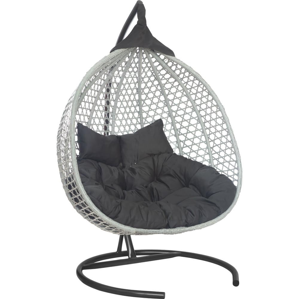Подвесное двухместное кресло-кокон Лаура ФИДЖИ серый + каркас, подушка чёрная FID 505