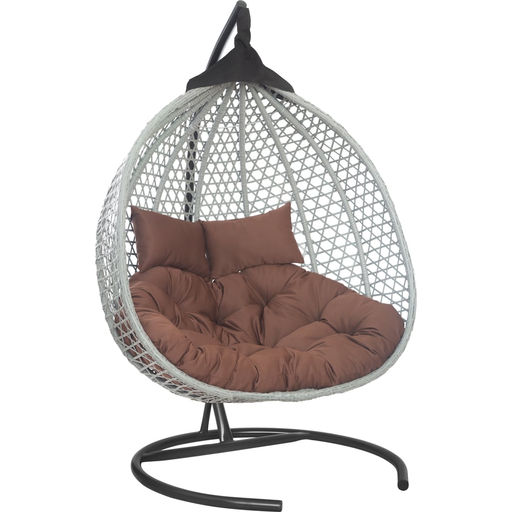Подвесное двухместное кресло-кокон Лаура ФИДЖИ серый + каркас, подушка шоколадная FID 501