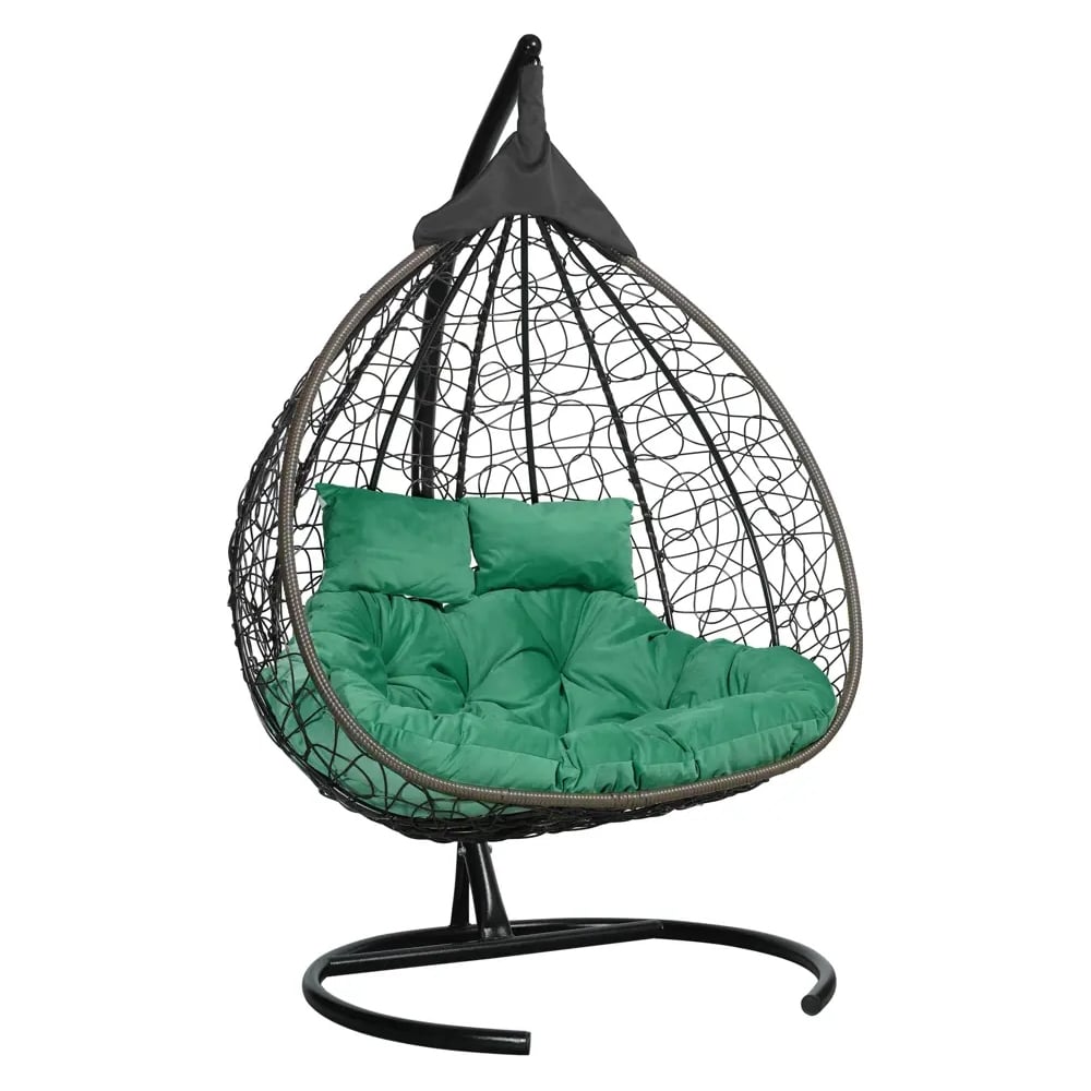 Подвесное двухместное кресло-кокон Лаура FISHT горячий шоколад + коричневый каркас, подушка зеленая FIS 408