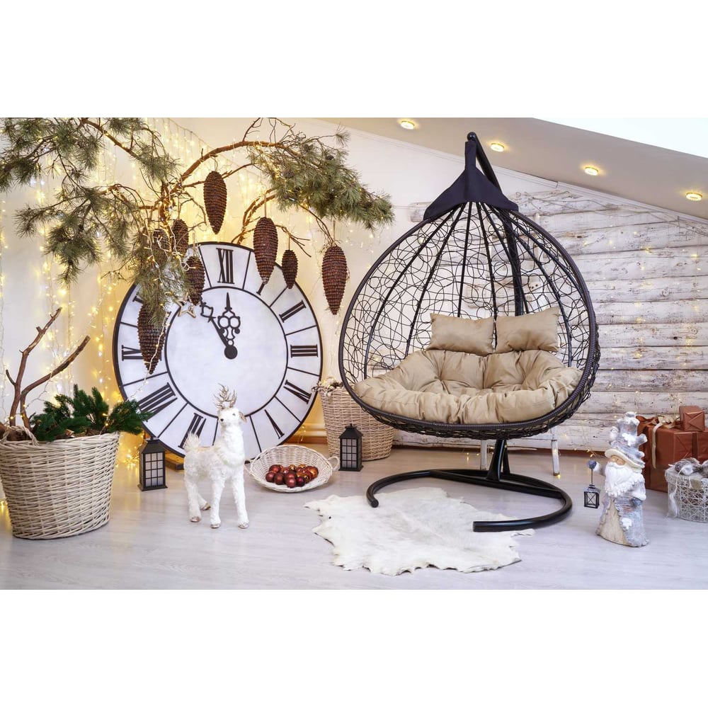 Подвесное двухместное кресло-кокон Лаура FISHT коричневый + коричневый каркас, подушка бежевая FIS 302