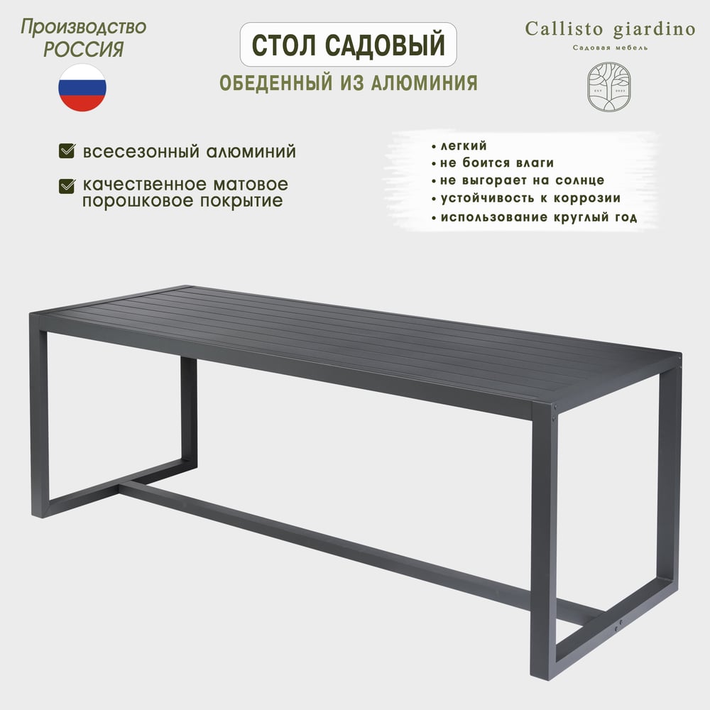 Стол садовый Callisto mobili Callisto giardino обеденный из алюминия G001.2E 220x84x77 см G001.2Е11