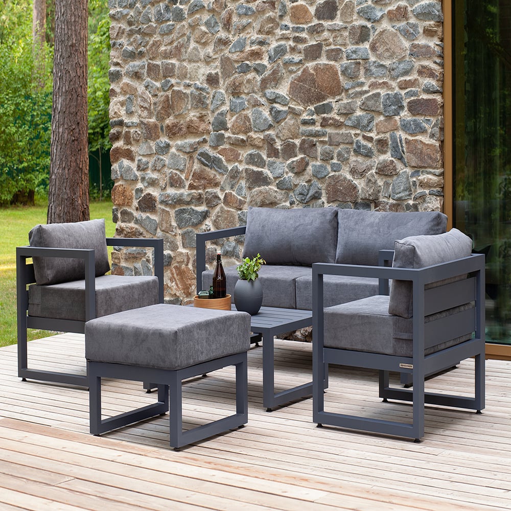 Набор садовой мебели GreenWeen CAPRI S5A, цвет серый, 5 предметов: диван, 2 кресла, столик, пуф GW-AL-CAPRI-G-S5A