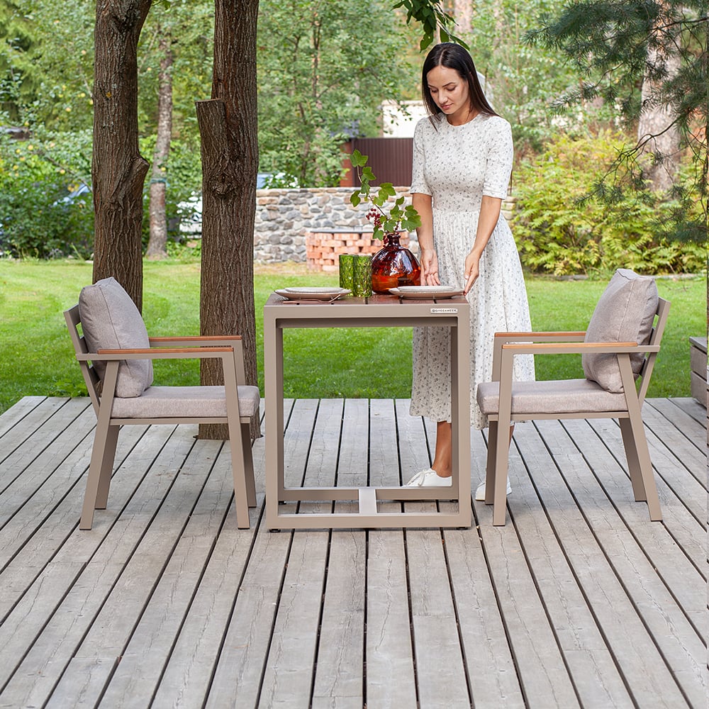 Набор садовый обеденный GreenWeen SANTORINI, цвет PECAN/BAHAMA ASH 3 предмета: стол 700x700 и 2 стула, GW-AL-SANT-DINNER-P-S2 GW-AL-SANT-DIN-P-S2