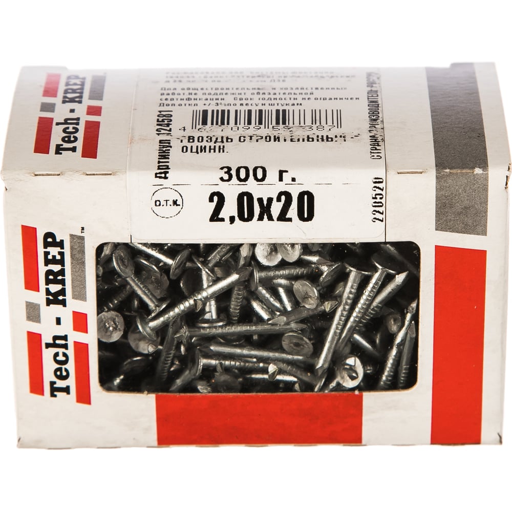 Строительный оцинкованный гвоздь 2.0х20, 300г - коробка Tech-Krep 124581