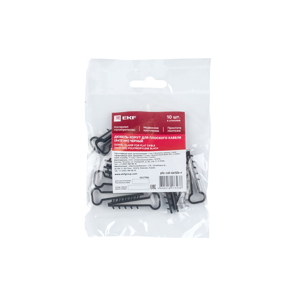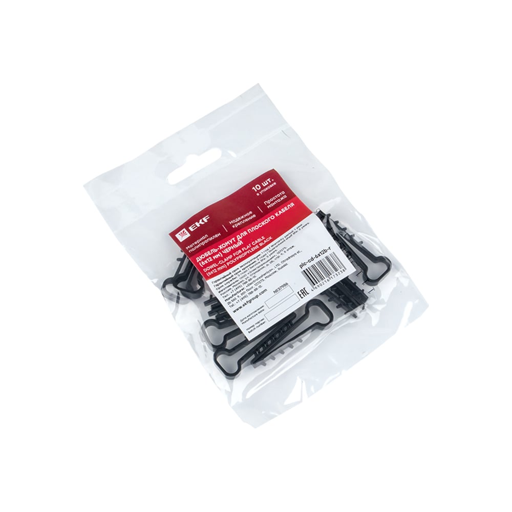 Ekf дюбель-хомут 6х12 мм для плоского кабеля черный 10 шт. plc-cd-6x12b-r