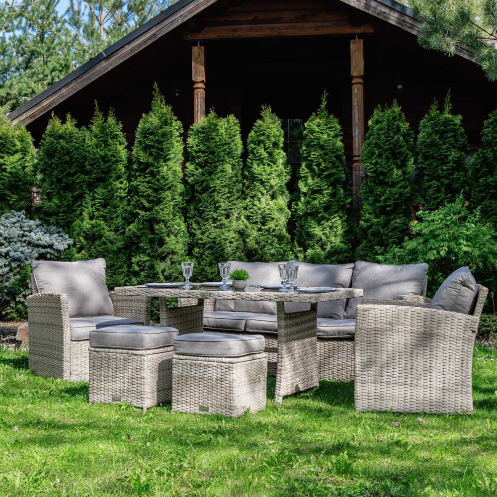 | Состав комплекта | стол, диван, кресла, пуфы, подушки |