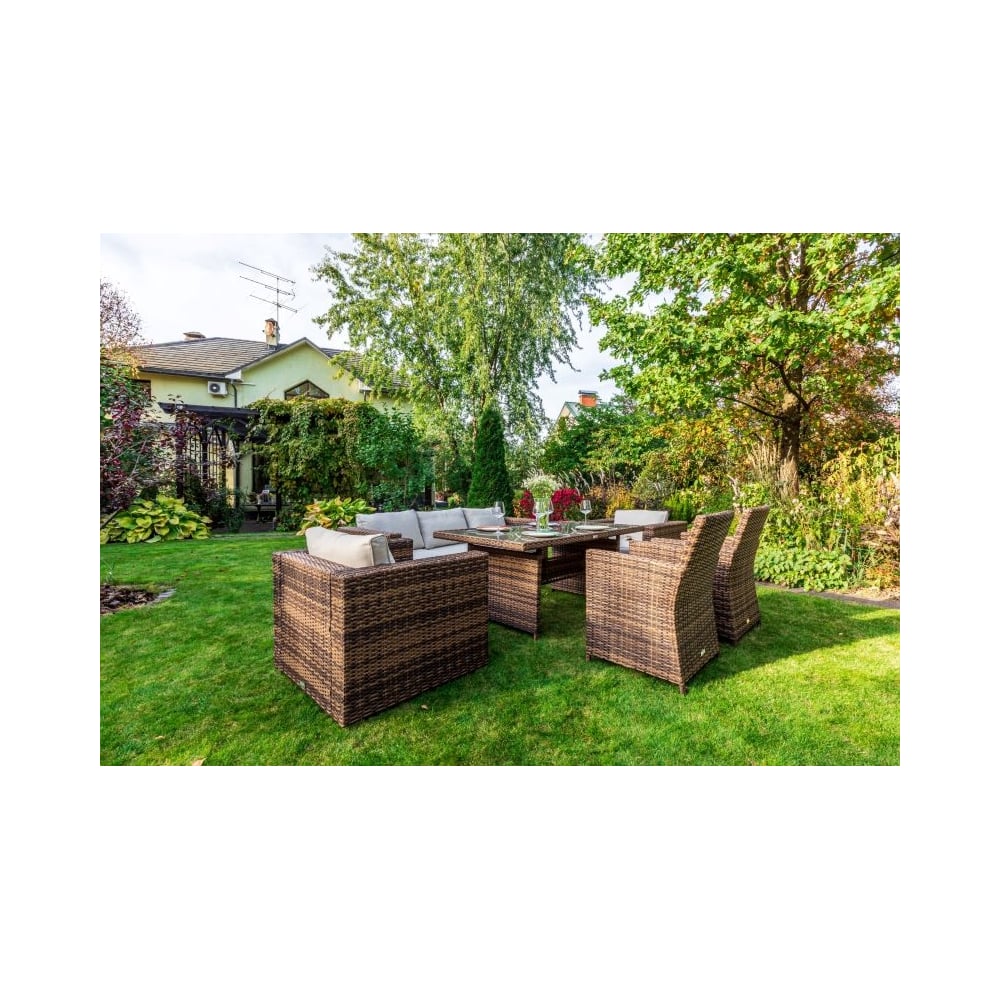 | Габариты в сложенном виде | Трёхместный диван: 204х84х66 см Кресла: 85х84х66 см (2 шт) 58x60x89 см (2 шт) Обеденный стол: 165х90х69 см мм |