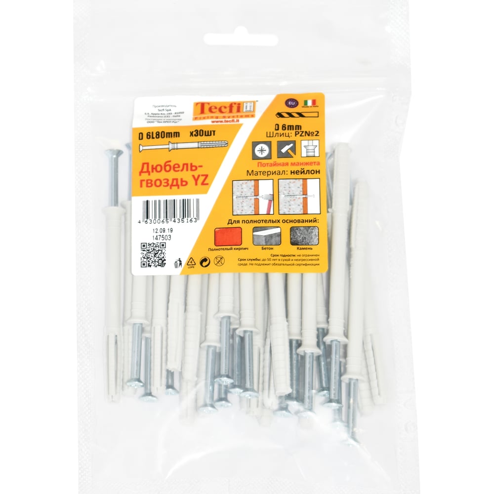 Дюбель-гвоздь Tecfi YZ потайн. 6x80, 30 шт. 147503