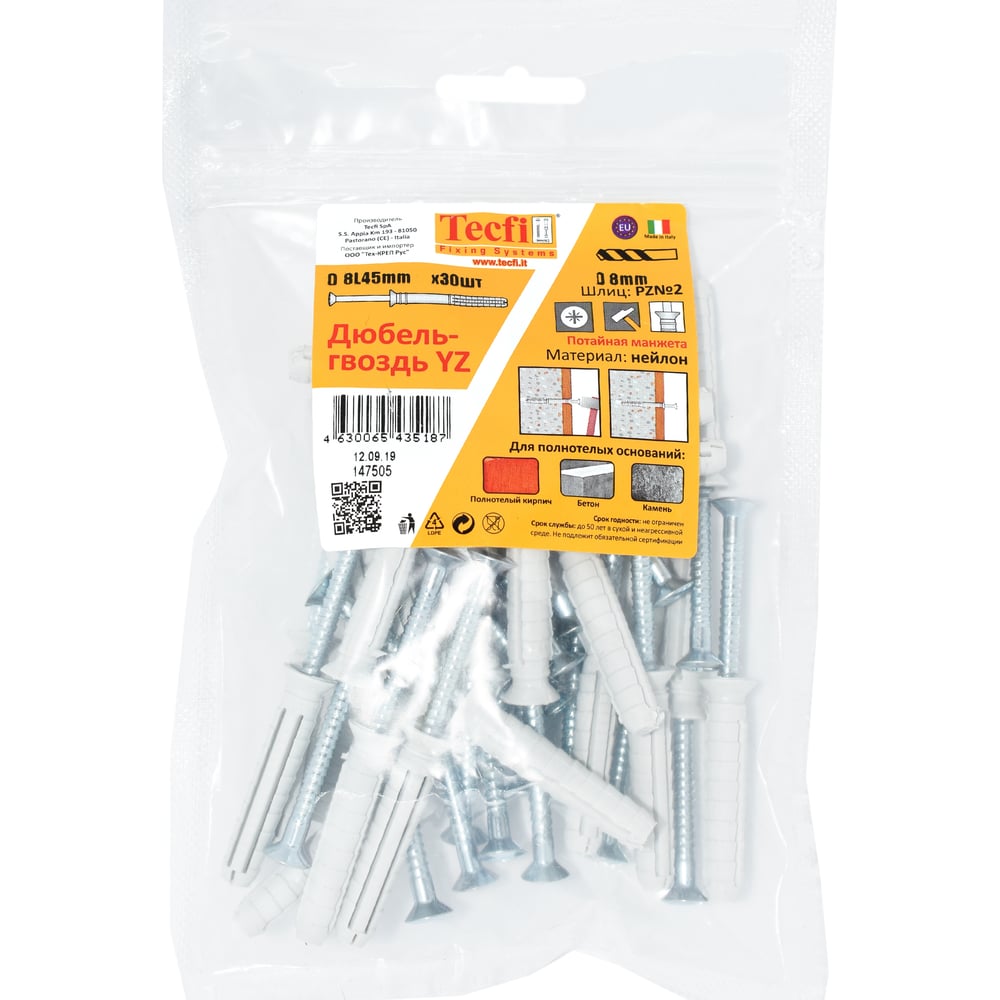 Дюбель-гвоздь Tecfi YZ потайн. 8x45, 30 шт. 147505