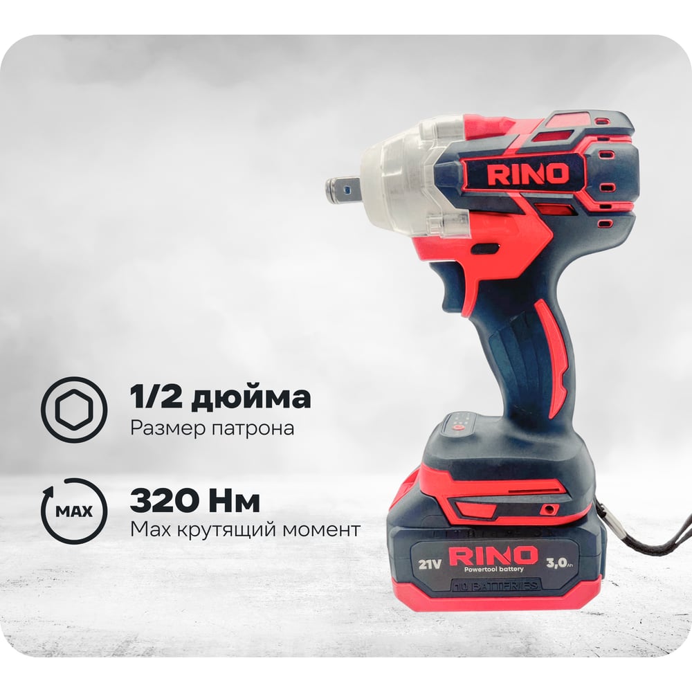 Гайковерт аккумуляторный бесщеточный RINO в кейсе, 320Нм, 21В, АКБ 3.0Ач WR1-2С WR1-2C