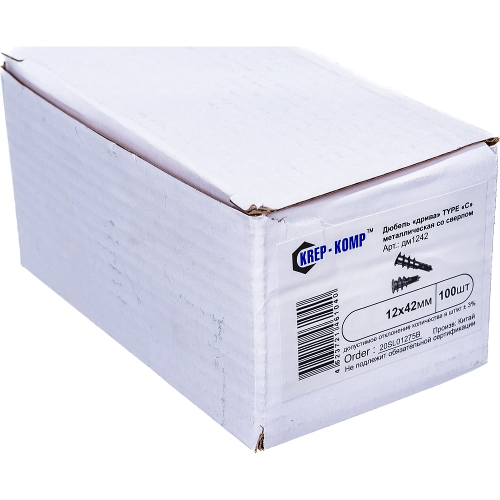 Креп-комп дюбель "дрива" металлическая со сверлом type "c" 12x42 100шт дм1242