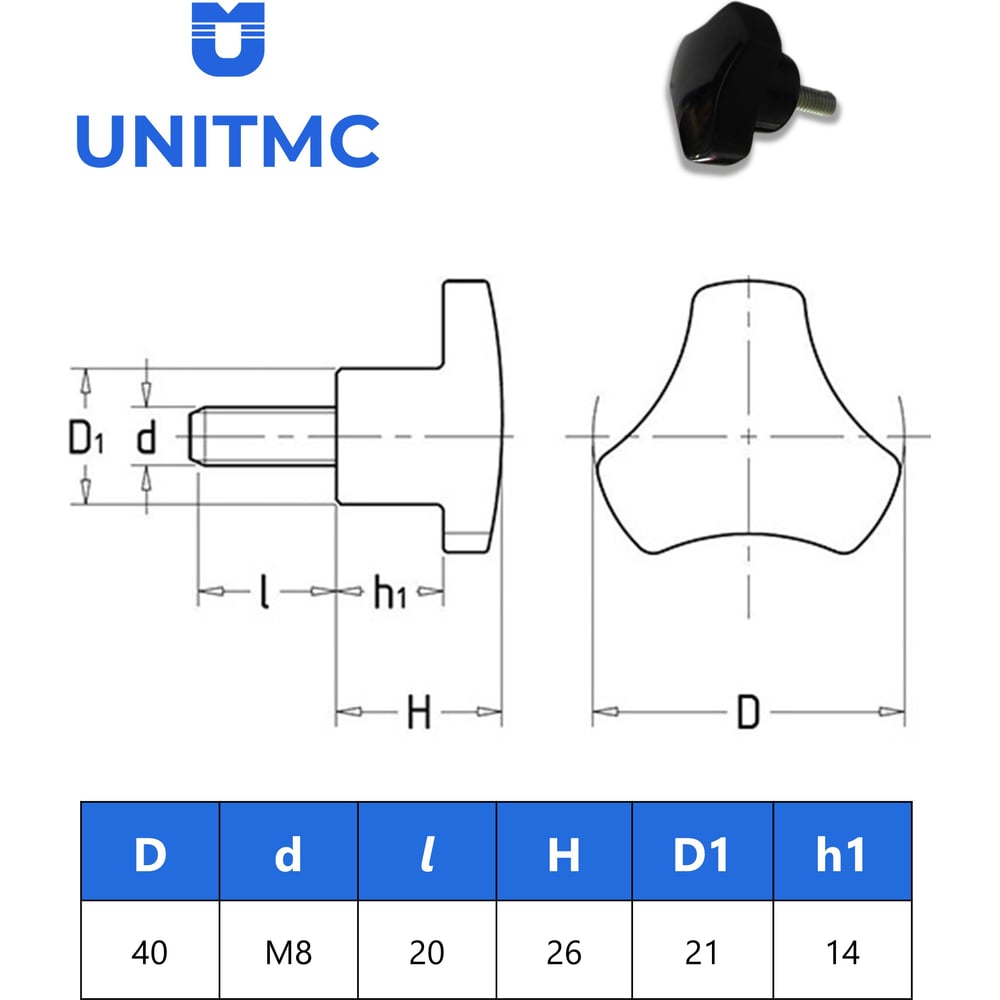 Трехгранная ручка UnitMC 100203.40 М8x20