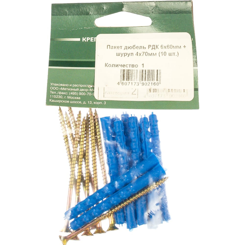 Пакет дюбель РДК Метизный двор 6х60мм + шуруп 4х70мм 10 шт. 4607173902160