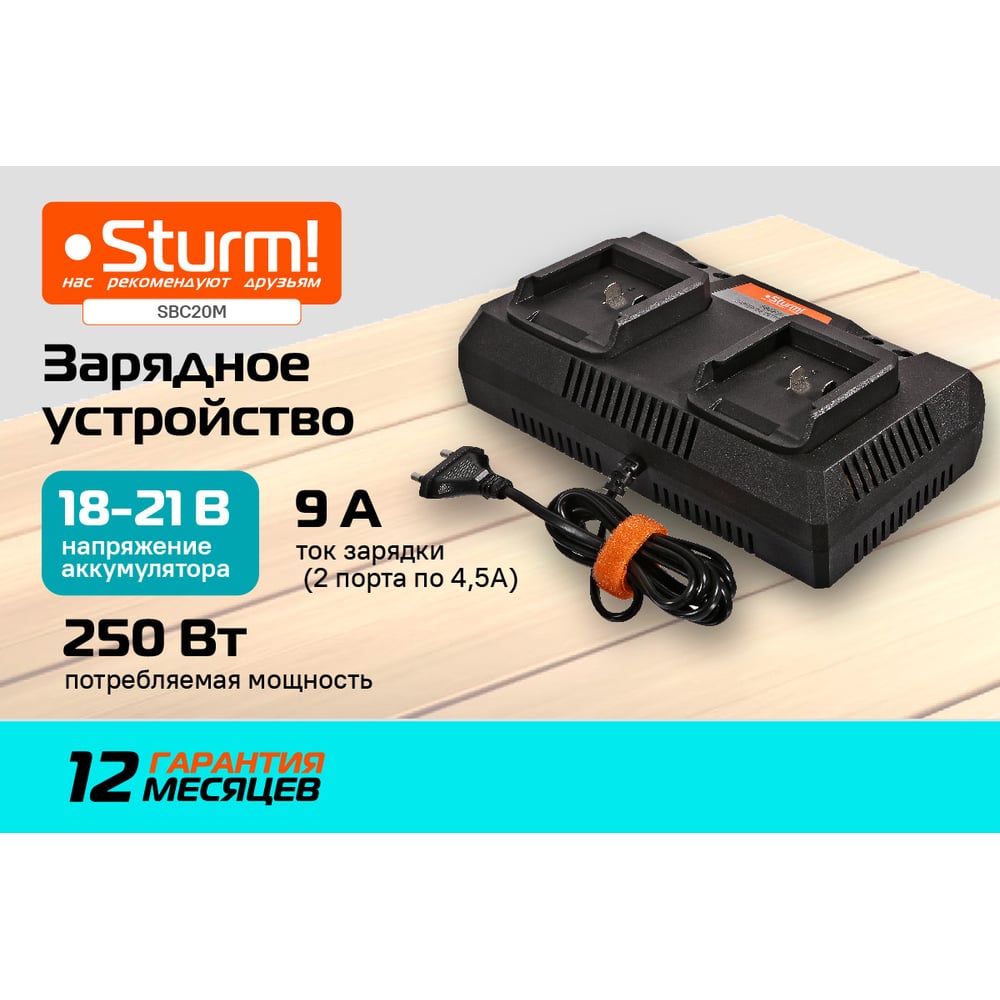 Зарядное устройство Sturm 18В, 1BatterySystem, 2x4.5А, для двух батарей SBC20M
