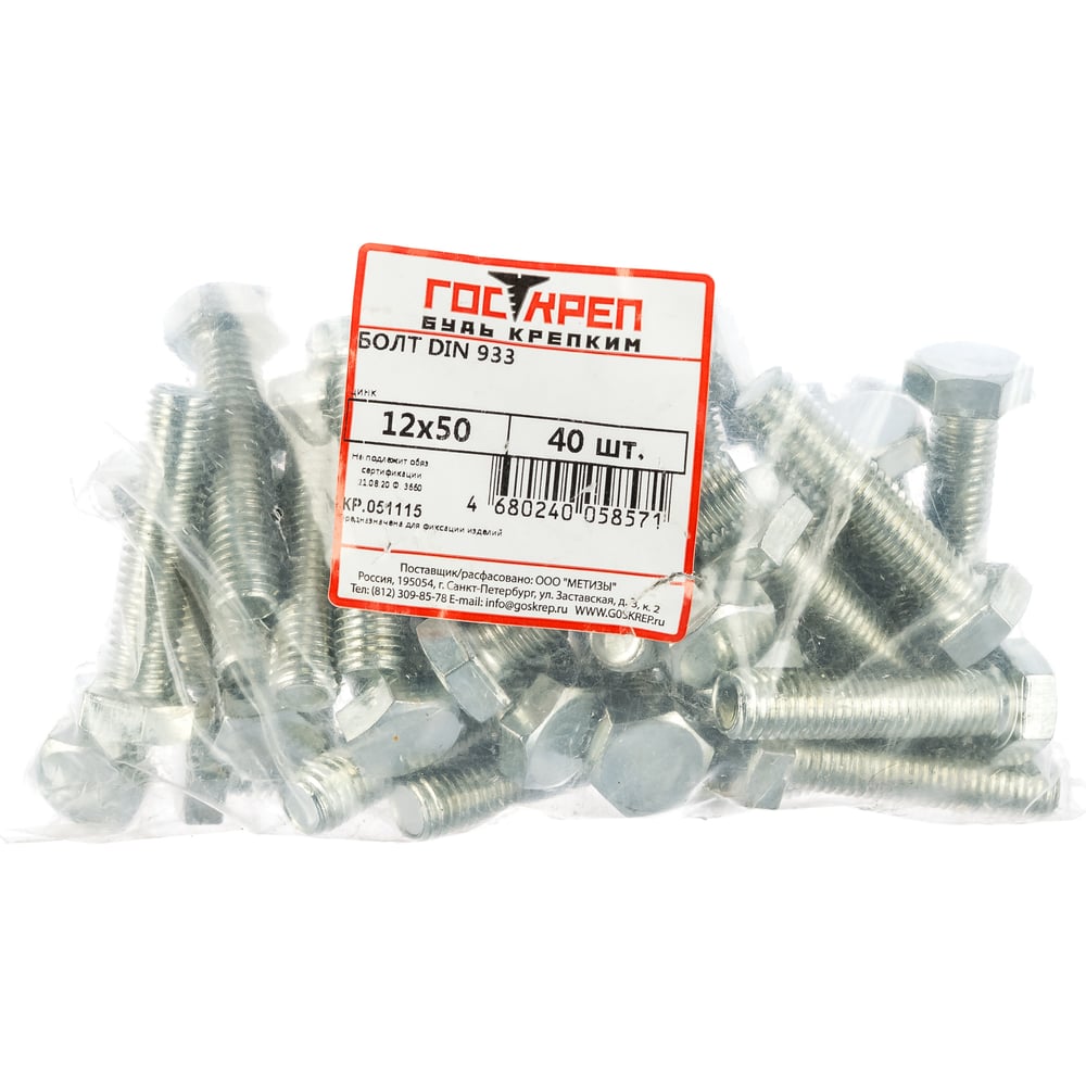 Болты ГОСКРЕП DIN933 М12х50 40 шт., пакет 6-0044800