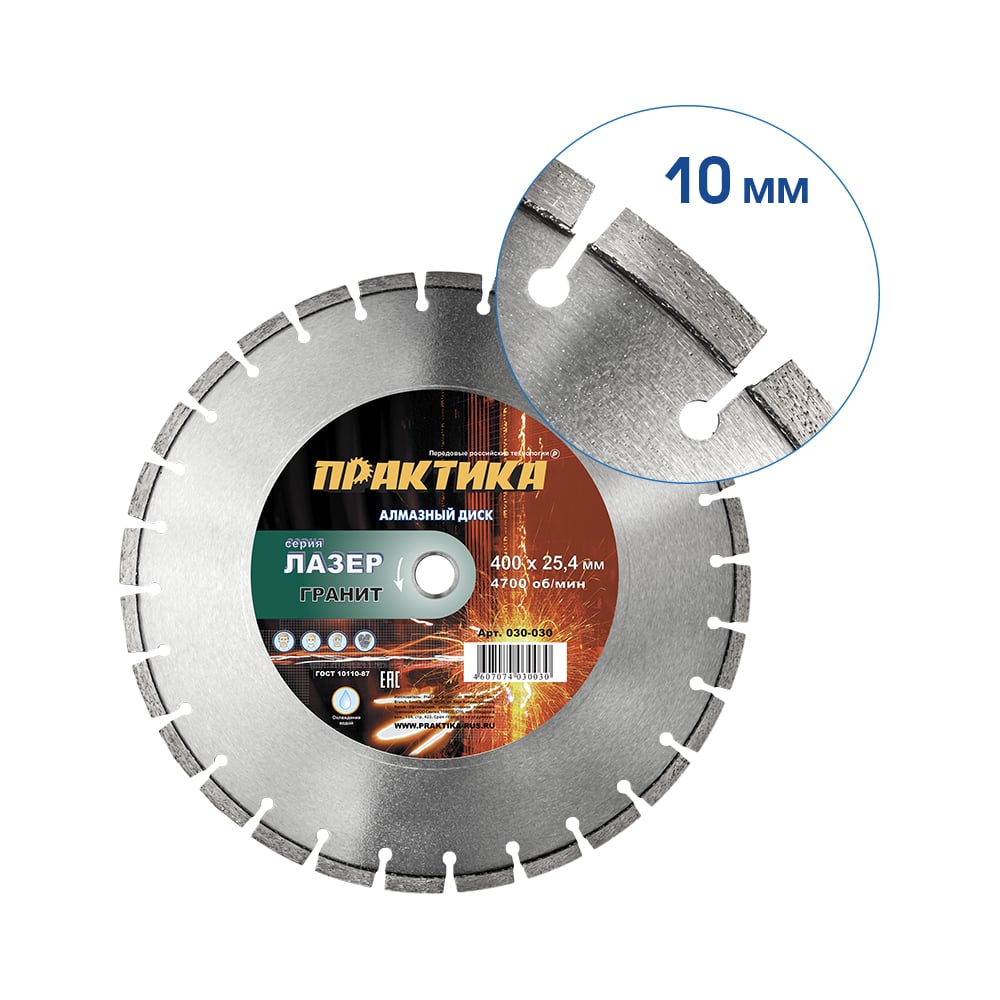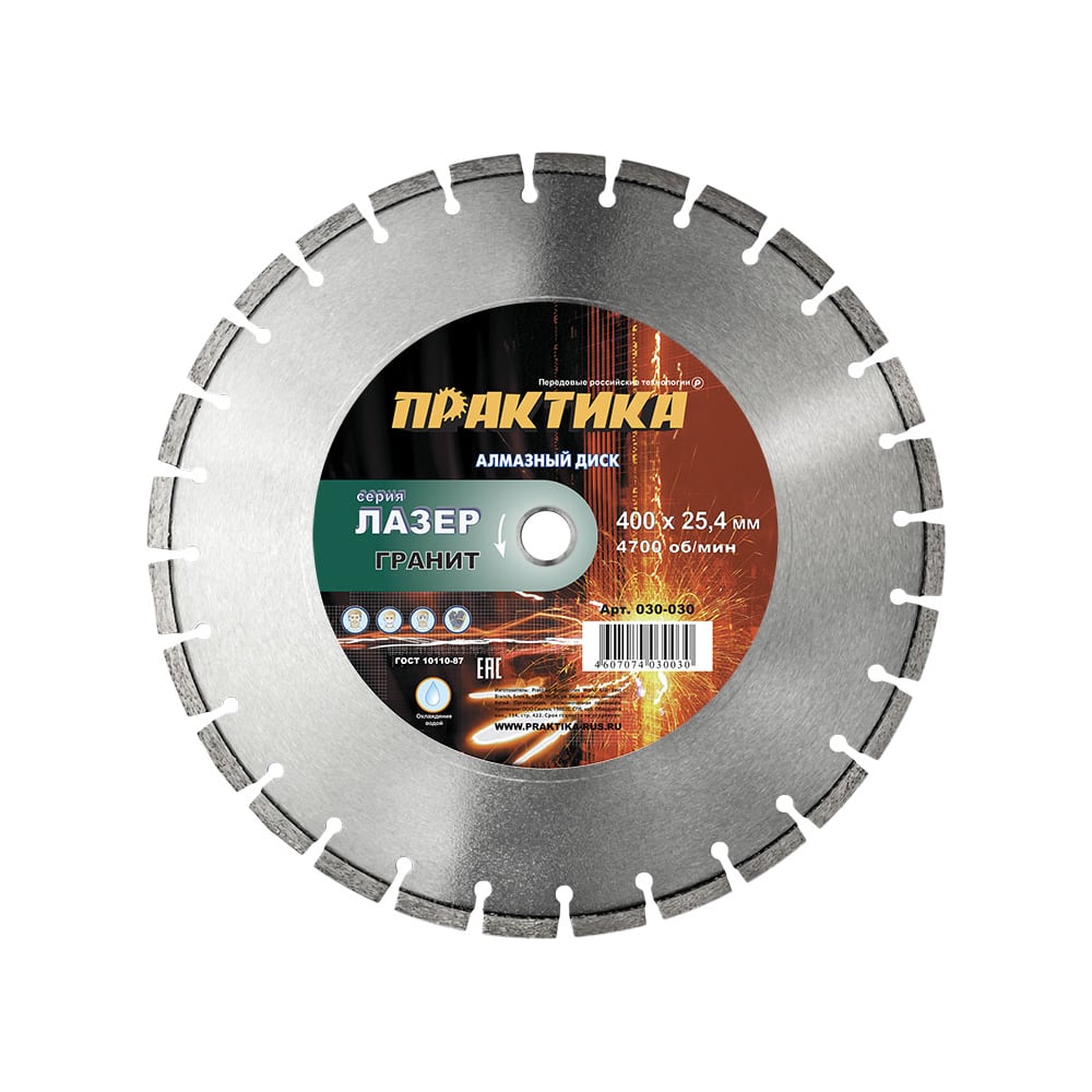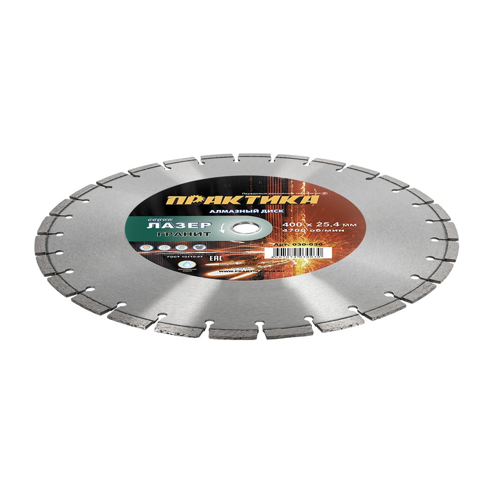 Диск алмазный сегментный Лазер-20 по граниту (400х25.4 мм) ПРАКТИКА 030-030