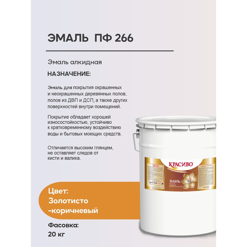 Эмаль для пола Красиво ПФ-266 золотисто-корич., бар. 20 кг 4690417032143
