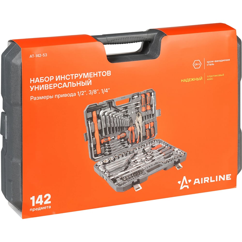 Набор инструментов AIRLINE универсальный 142 предмета, пласт.кейс AT-142-53