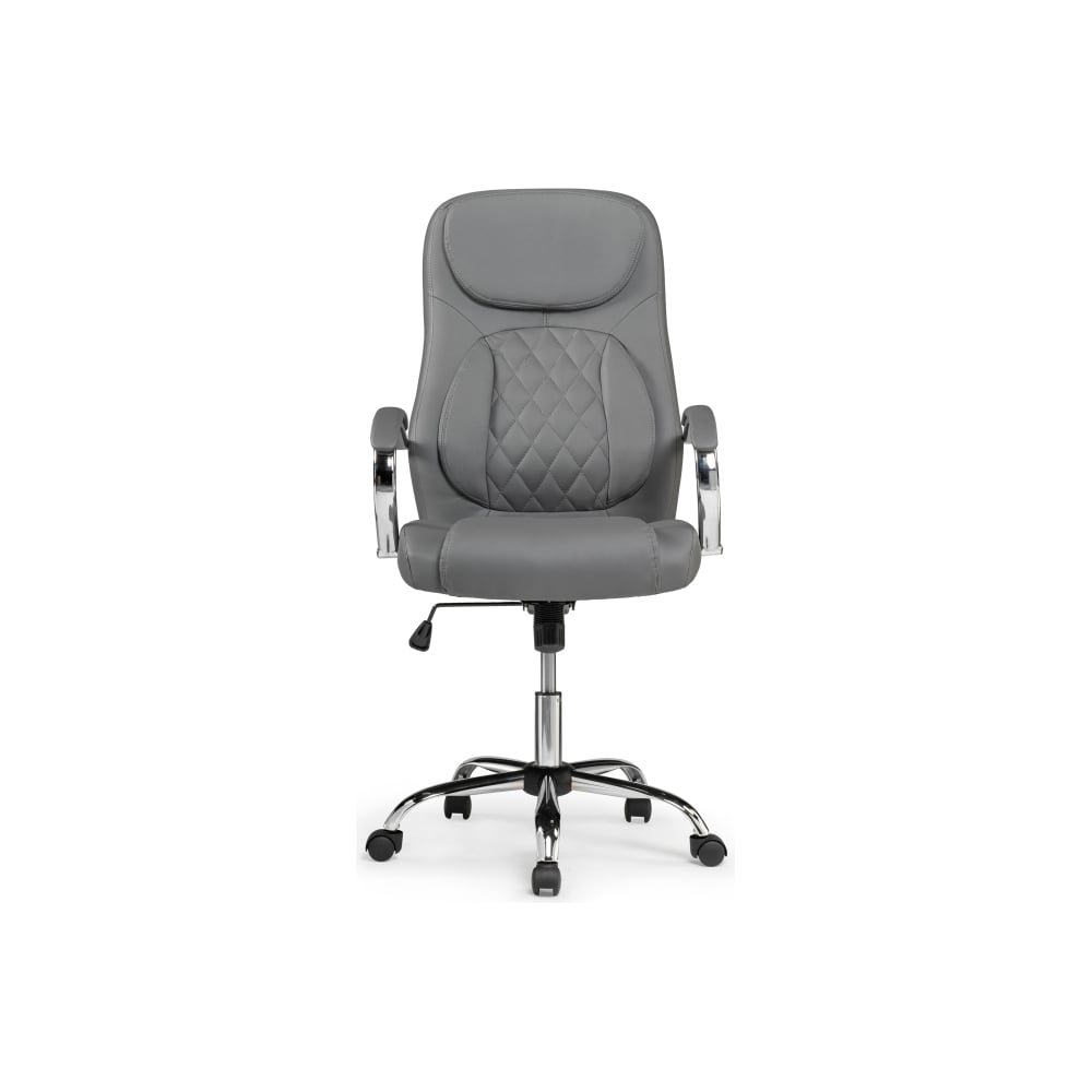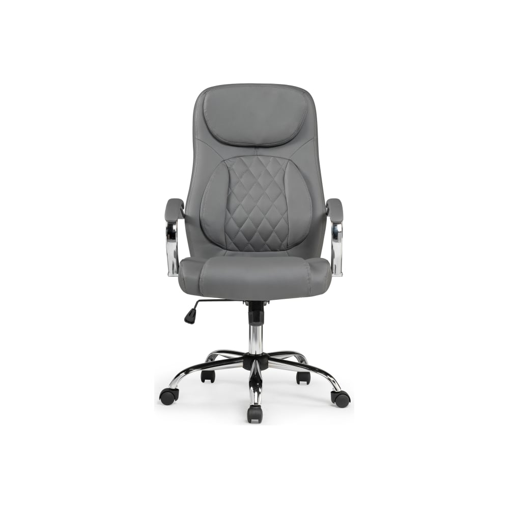 Габариты без упаковки 1110х700х610 мм Вес нетто 16 кг Стиль классический Регулировка высоты сиденья да Требует сборки да Подлокотники да Подъемный механизм да Регулировка высоты спинки нет Регулировка высоты подлокотников нет Механизм вращения да Подголовник да Подставка для ног нет Max нагрузка 100 кг Ширина сиденья 520 мм Глубина сиденья 510 мм Min высота сиденья 480 мм Мах высота сиденья 580 мм Поясничный упор нет Цвет спинки серый Материал крестовины металл Материал подлокотников искусственная кожа, металл Цвет сиденья серый Материал обивки искусственная кожа Колеса есть