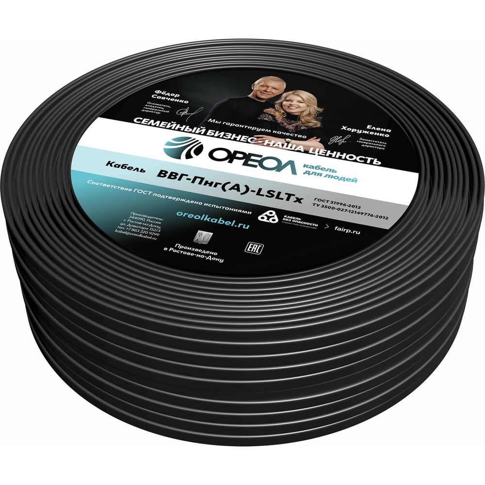 Кабель ОРЕОЛ ВВГп нгА -LS LTx 2х1,5 ГОСТ 100м 00-00015486