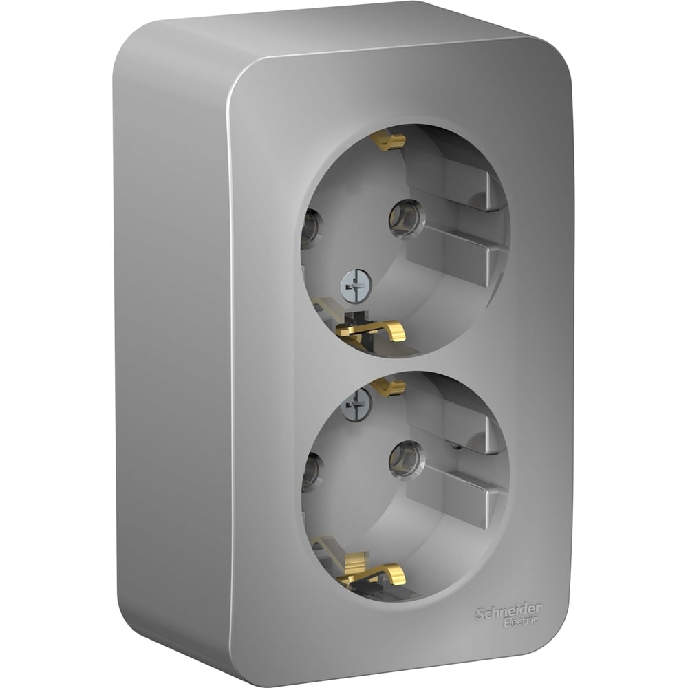 Розетка Systeme Electric Blanca наруж Алюминий 2-ая с/з без шторок, 16А, 250В SE BLNRA010203