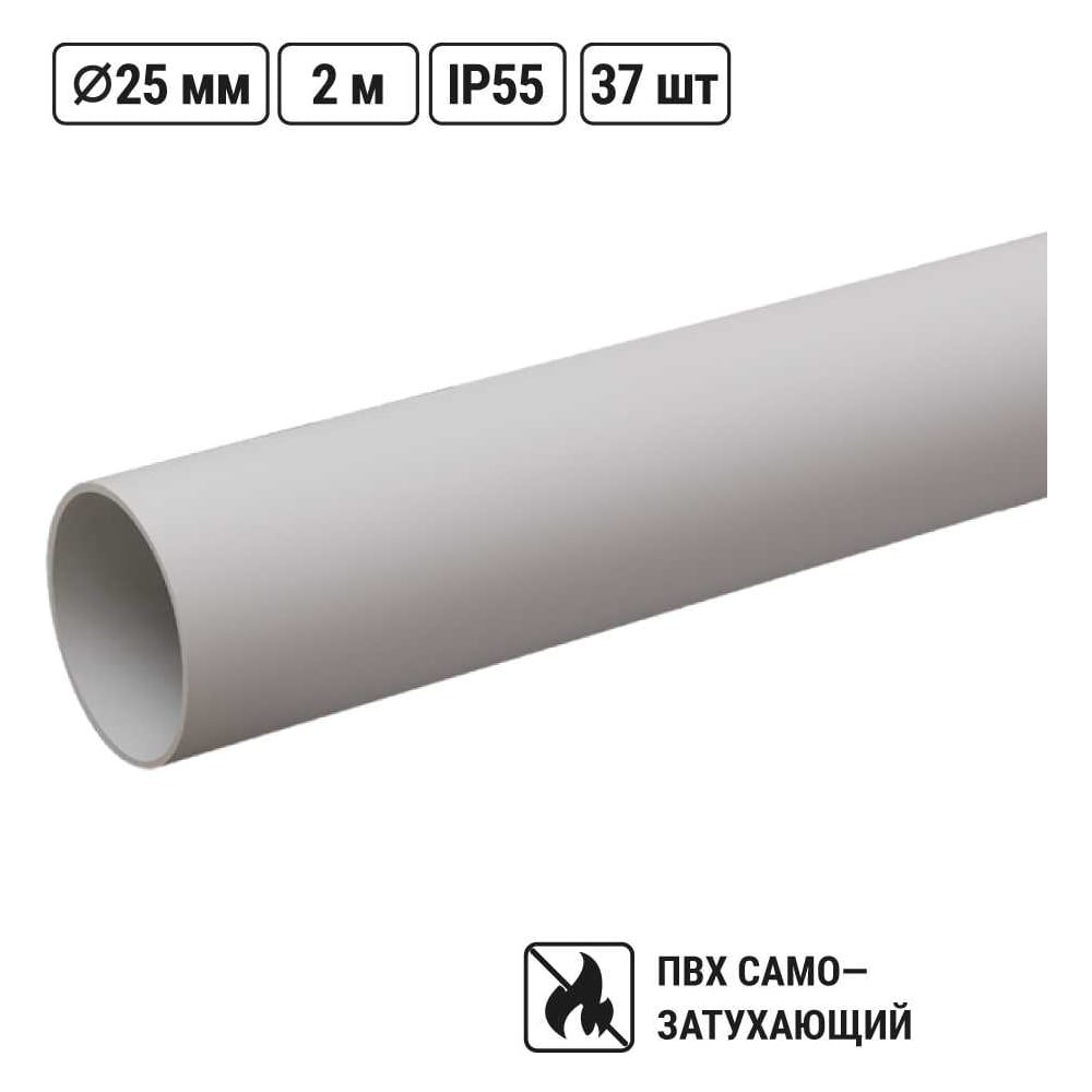 Труба гладкая жесткая TDM ELECTRIC ПВХ d 25 длина 2 м упак. 37 шт. индивид. штрихкод, серая SQ0404-0013