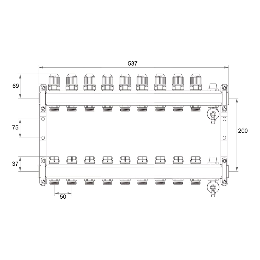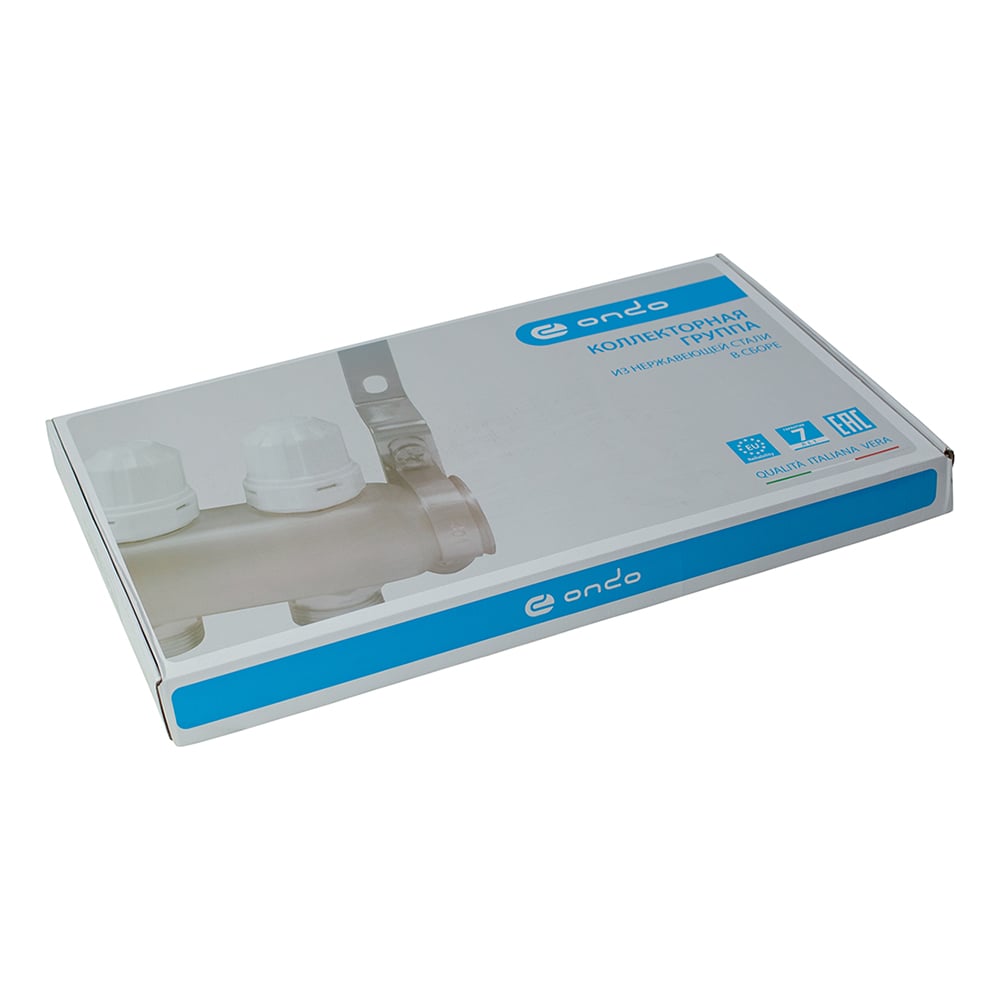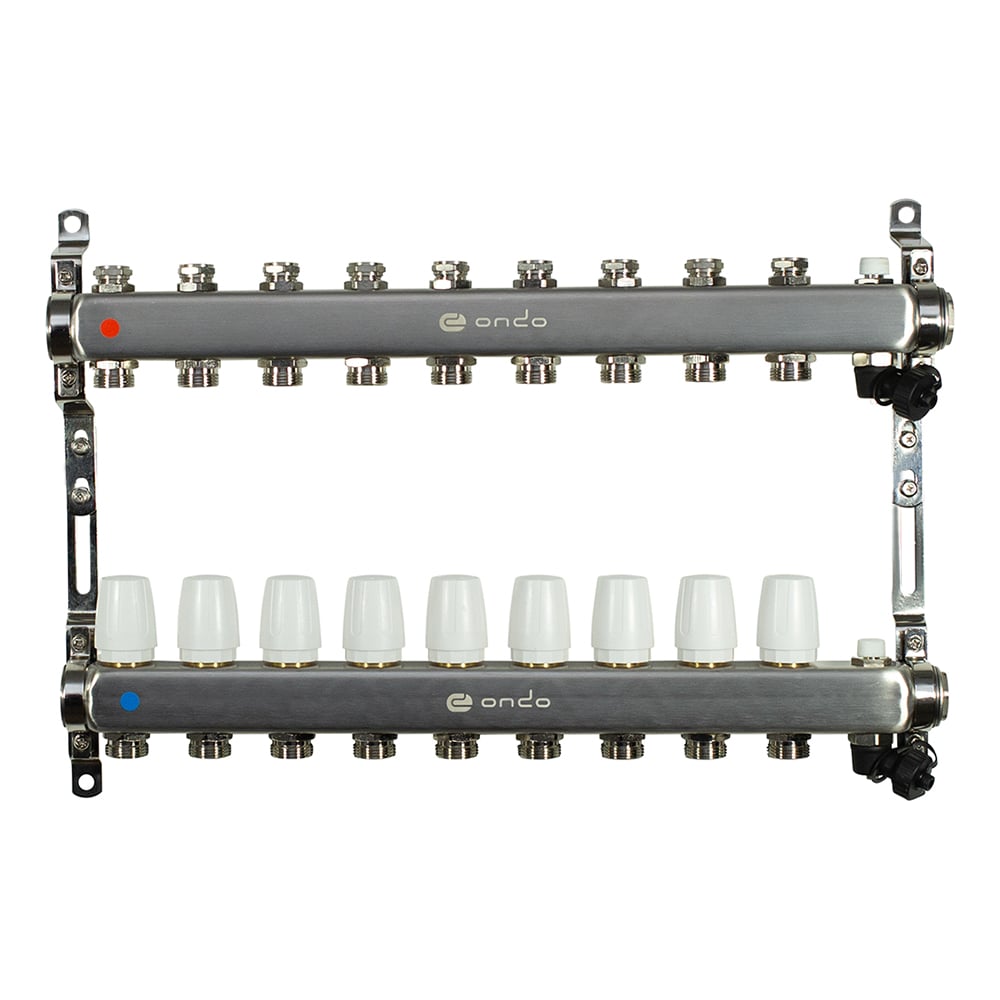 Коллекторная группа в сборе с термостатическими и запорными клапанами ONDO нерж сталь, 9 вых. OKGSP009